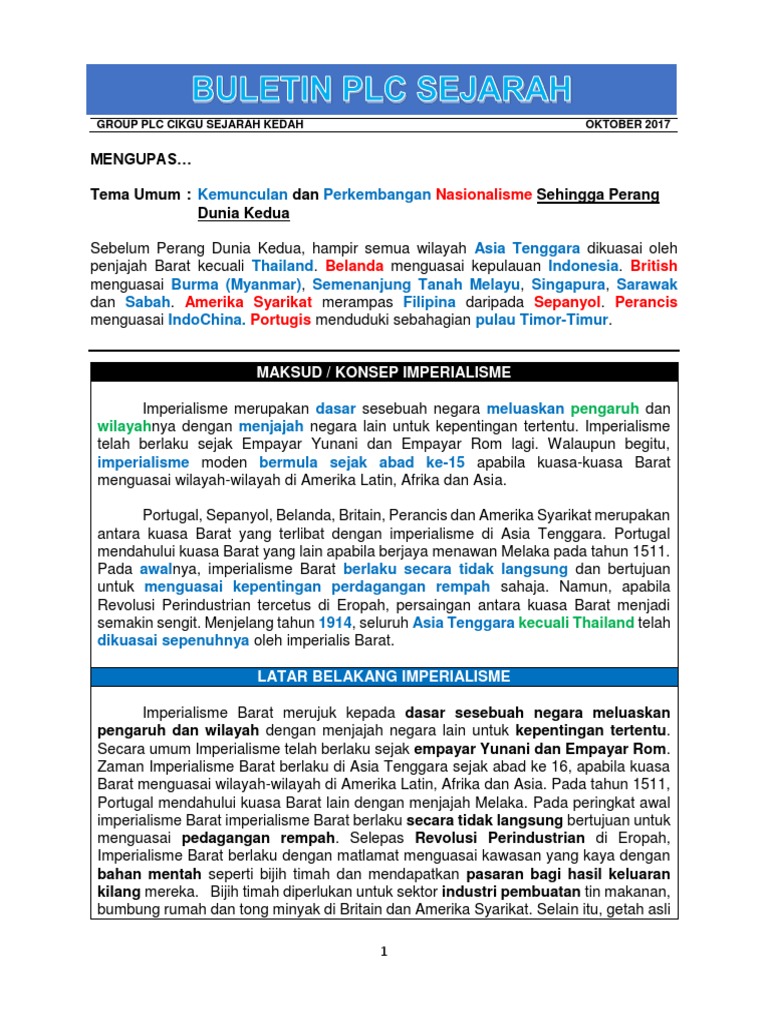 Kerja rodi, perbudakan dan juga monopoli masih juga dilaksanakan. Tujuan menjajah sudah sangat jelas, yaitu ingin menguasai dan memperluas wilayah kekuasaan. Barat memakai tangan komunis untuk melemahkan kekuatan. Jatuhnya konstantinopel ke tangan kekaisaran ottoman. Apa perbedaan kedua kata di atas? Kata imperialisme dapat diartikan sebagai advokasi untuk membangun kekaisaran dan pemerintahan suatu negara. Salah satu gaya imperialisme modern adalah para penjajah tidak melakukan kontak langsung dengan negara yang akan dijajah, tetapi memakai tangan. Jika suatu bangsa tidak dapat mengendalikan. Faktor ekstern penjajah barat datang ke indonesia. Lalu, bagaimana respon para petinggi bangsa kita di masa penjajahan itu? Di dalam episod ini, pelajar akan didedahkan dengan maksud imperialisme, tujuan dan tempoh masa imperialisme barat berlaku. Kolonialisme berfokus pada penguasaan suatu wilayah dengan sumber daya alam tertentu untuk dibawa ke negeri asal penjajah. Apa pengaruh kolonialisme dan imperialisme pada indonesia?